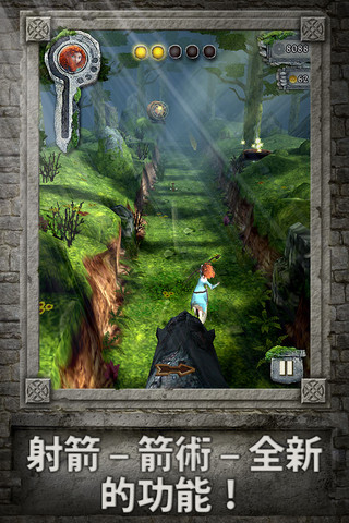 《Temple Run Brave》(Temple Run勇敢傳說)遊戲除了延續「Temple Run」狂奔衝刺取得寶物的原創性,也加入電影「勇敢傳說」的重要元素如場景、角色、劇情及音樂等,讓遊戲更具可玩性及爆發力。遊戲中的主角是「勇敢傳說」中的紅髮公主梅莉達,在遊戲中,她將獨闖美麗的蘇格蘭森林,透過奔跑、跳躍、滑行及轉彎不斷突破自己的狂奔極限擺脫魔獸”魔度”的追逐,並展現她獨特的神箭功力,是一款會讓人腎上腺狂飆的遊戲。